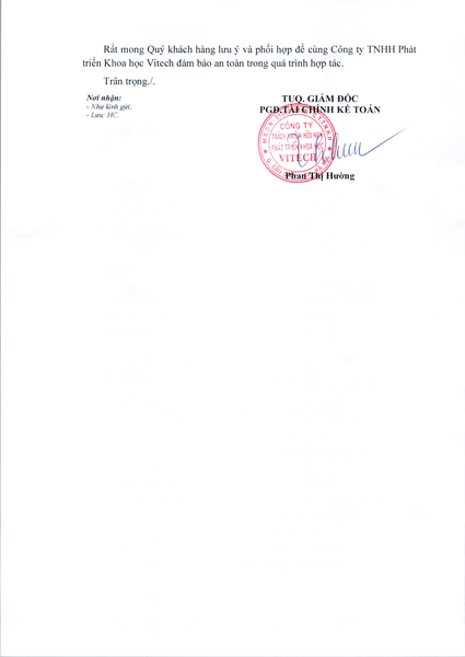 Vitech rất mong Quý khách hàng cảnh giác và phối hợp để cùng chúng tôi đảm bảo an toàn và minh bạch trong quá trình hợp tác.